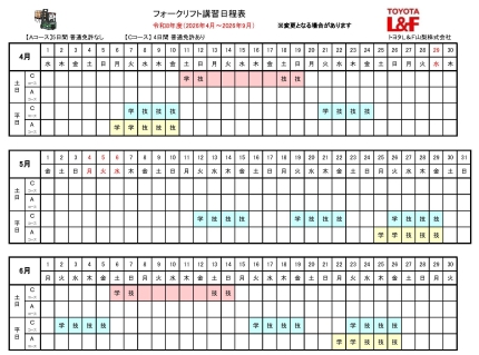 講習日程は天災地変等で、中止、または変更となる場合がありますのでご了承ください。
